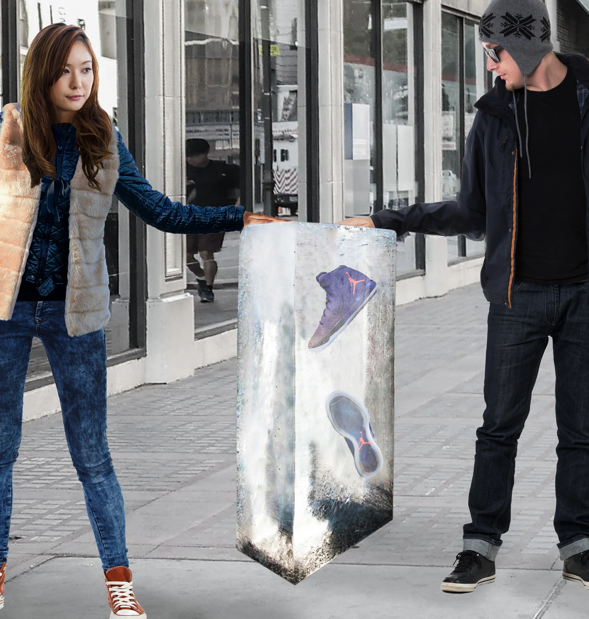 In the sneakerhead world, rare kicks and release dates are everything. In a contest to win shoes, participants must keep one hand on the ice block—the other holds a Hot Hands hand warmer.